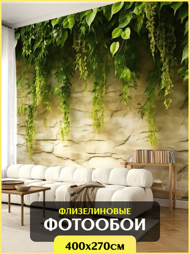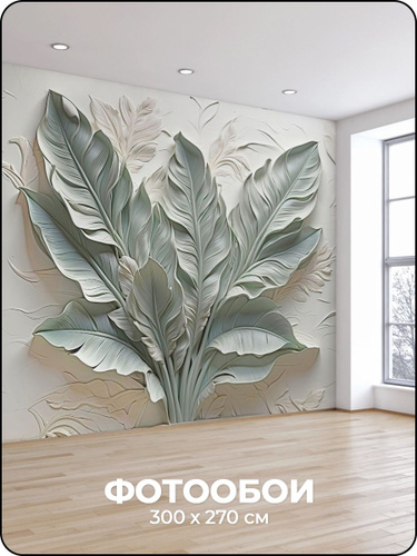SEBRICCI Фотообои 3D на стену флизелиновые "Листья" 300х270 см, обои виниловые, моющиеся