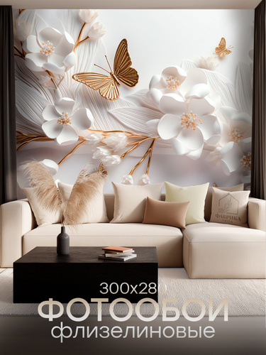 Фотообои 3d цветы бабочки и жемчуг метровые обои для зала