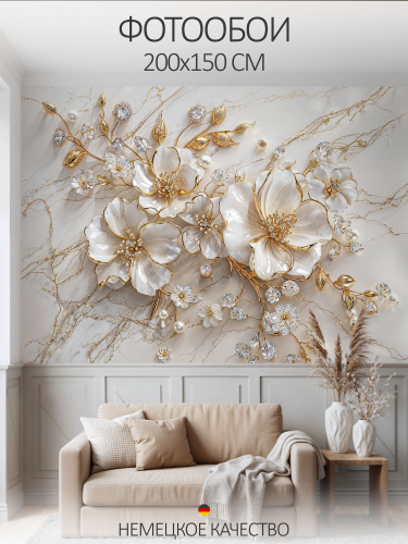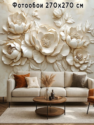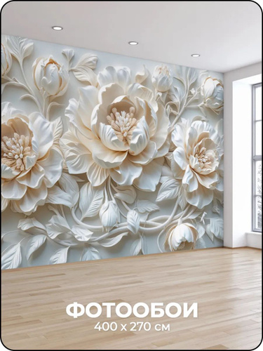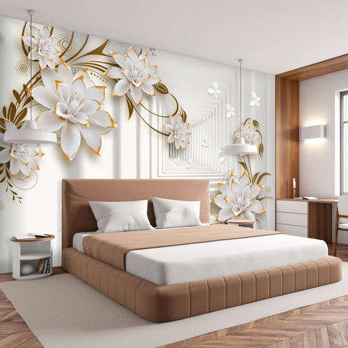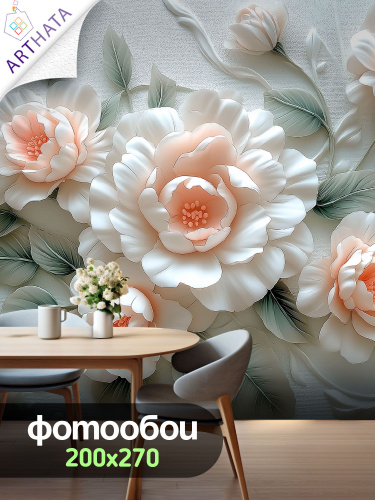 Фотообои 3D Белые объемные цветы в орнаменте 200x270