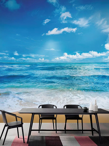 Фотообои песочный пляж у голубого моря 3d для зала 300х270