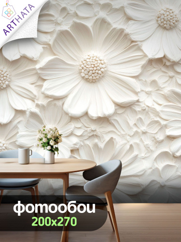 Фотообои 3D Белые ромашки барельефная скульптура 200x270
