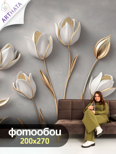 Фотообои 3D Белые тюльпаны с золотыми акцентами 200x270