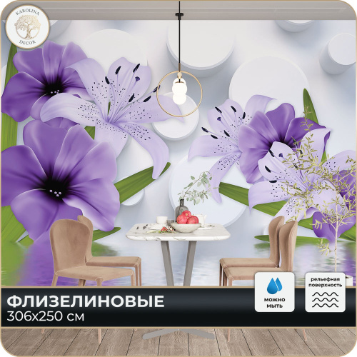 Фотообои 3D Цветы Лилии в спальню в гостиную на кухню 300х250