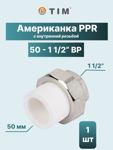 Американка 1 1/2 полипропилен 50, внутренняя резьба, комбинированная, белая, 1 шт