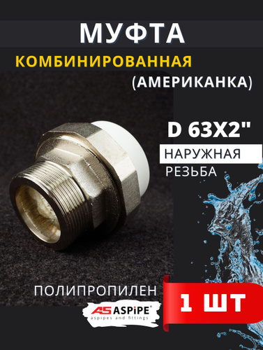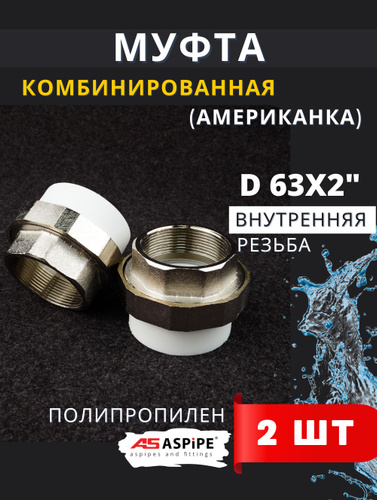 Муфта полипропиленовая 63х2 внутренняя резьба, разъемная (Американка) PPRC (ASPiPE) 2шт.