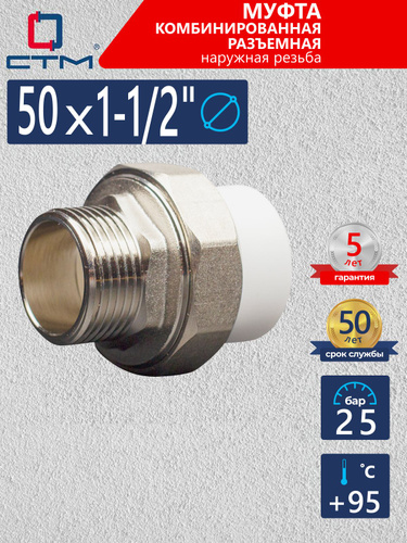Муфта комбинированная 50 - 1 1/2" НР (полипропилен - латунь)