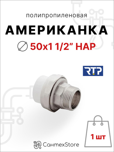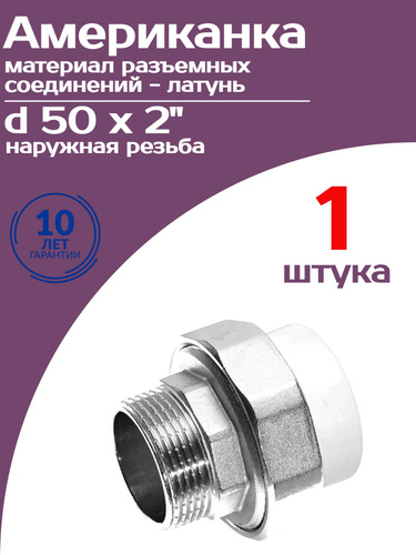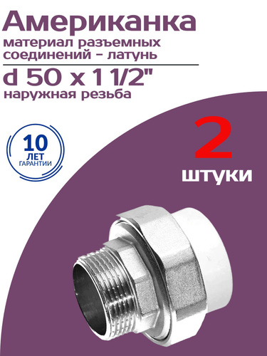 Муфта разъёмная (АМЕРИКАНКА) 50х1 1/2" полипропиленовая с наружной резьбой, 2 штуки