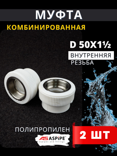 Муфта полипропиленовая 50х1 1/2 внутренняя резьба, комбинированная PPRC (ASPiPE) 1шт.