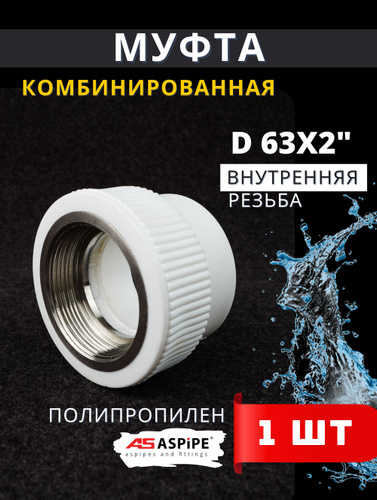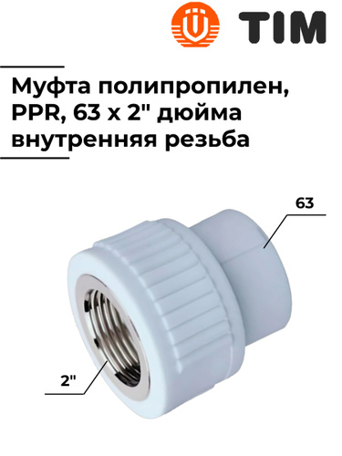 Муфта, комбинированная, из полипропилена, 63 x 2" дюйм, внутренняя резьба, TIM