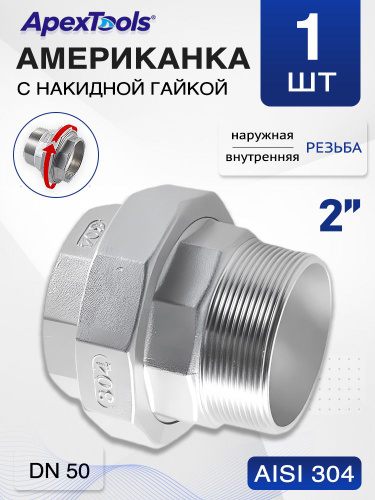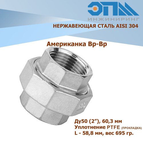 Американка нержавеющая Вр/Вр Ду 50 (2") AISI 304 уплотнение PTFE (прокладка)