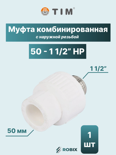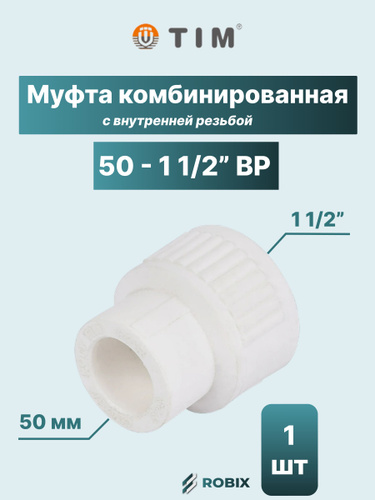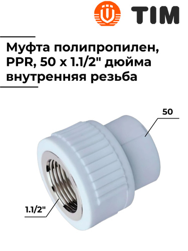 Муфта, комбинированная, из полипропилена, 50 x 1.1/2" дюйм, внутренняя резьба, TIM
