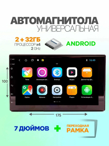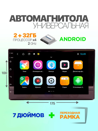 Android Магнитола 2DIN (2GB / 32GB, Wi-Fi, GPS)