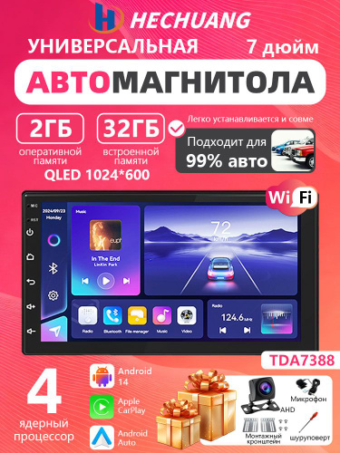 Автомагнитола, диагональ: 7", 2 DIN, 2ГБ/32ГБ,QLED,1024*600,WIFI,С поддержкой Bluetooth,Камера заднего вида