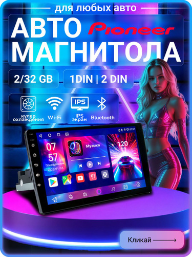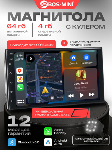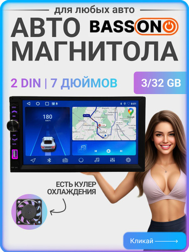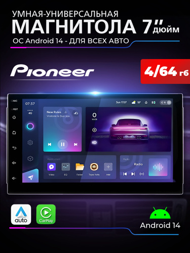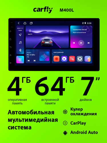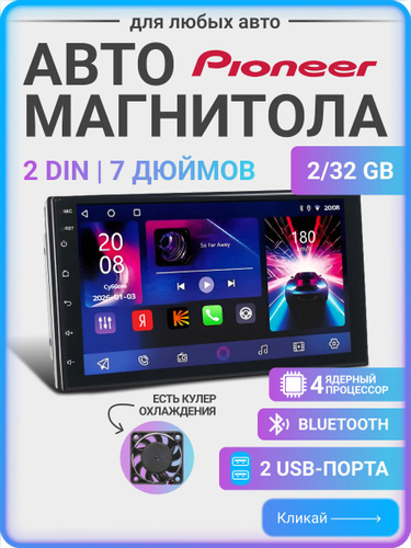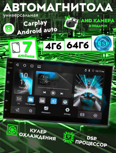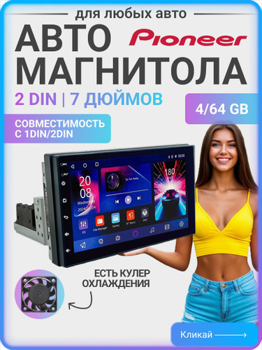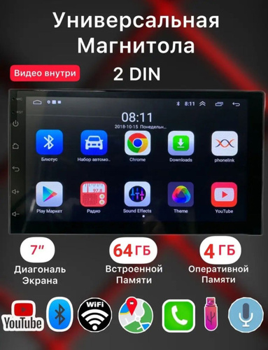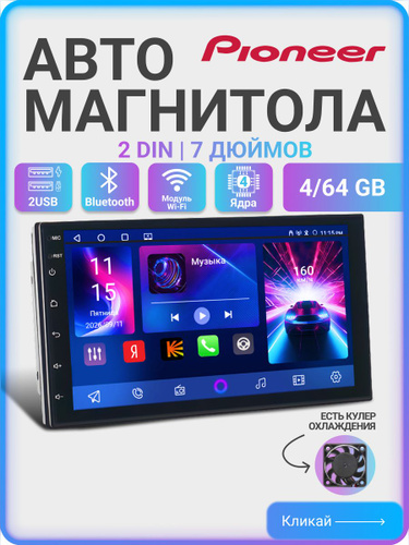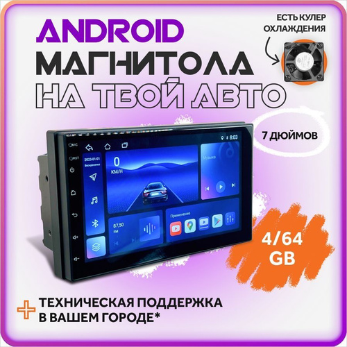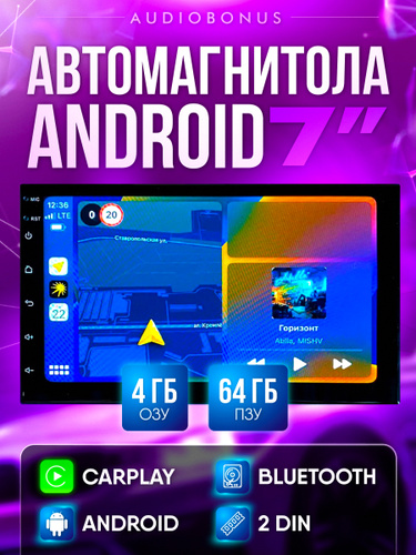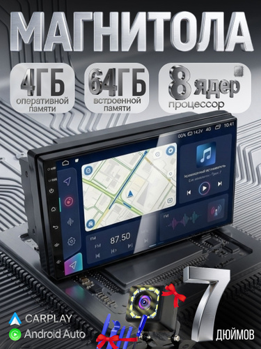 Автомагнитола, диагональ: 7", 2 DIN, 4ГБ/64ГБ