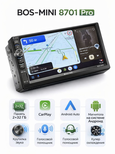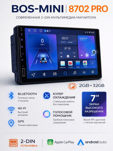Автомагнитола Android BOS-MINI 8701-Pro 7 дюймов Android 12.0 автомобильный 32gb/2gb 1024х600 с кулером