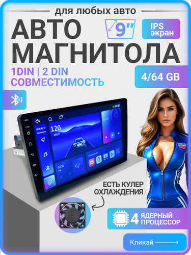 Магнитола для авто с блютуз 2 din 9 дюймов андроид