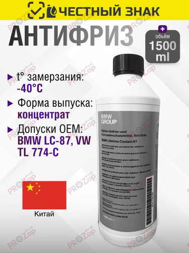 Антифриз для БМВ / BMW (СИНИЙ) концентрат G11 -40 1.5л 83192211191 / 83512355290