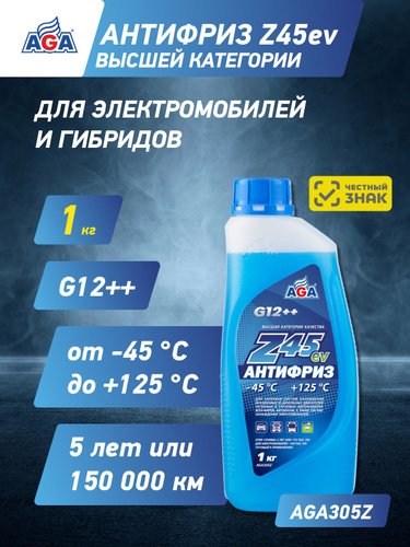Антифриз синий, G12++, 1 кг., -45С +125С, для электрических и гибридных автомобилей, ANTIFREEZE HYBRID AGA305Z, антифриз