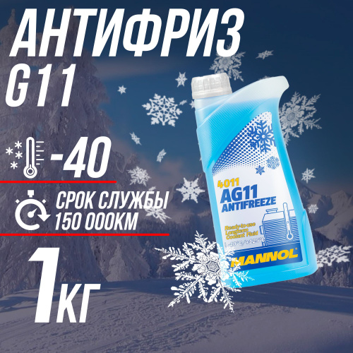 Антифриз для двигателя автомобиля MANNOL ANTIFREEZE G11 (-40), охлаждающая жидкость МАННОЛ в авто, Гибридный G11 синий 1 кг, готов к применению