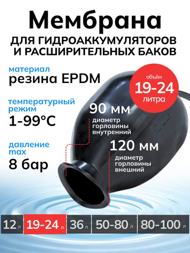 Мембрана гидроаккумулятора (расширительного бака) 24 л черная EPDM
