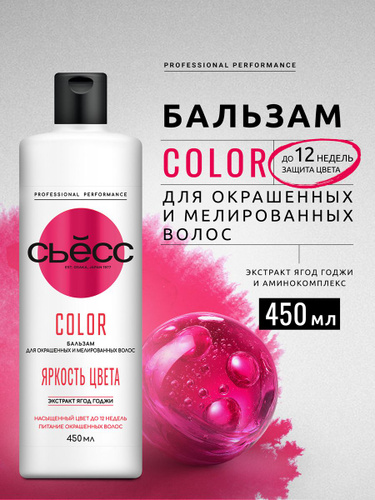 СЬЕСС Бальзам кондиционер женский Color для окрашенных и мелированных волос, легкое расчесывание, 450 мл