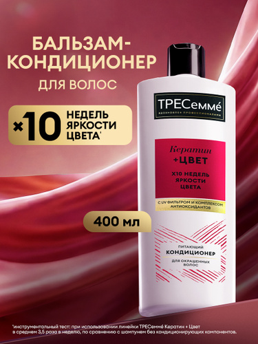 ТРЕСеммé Бальзам для волос женский, кондиционер ополаскиватель питательный, для окрашенных локонов, с кератином, 400 мл