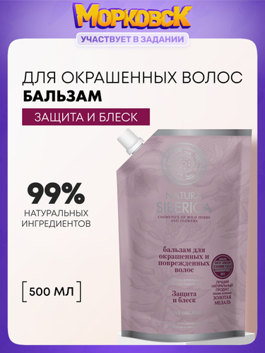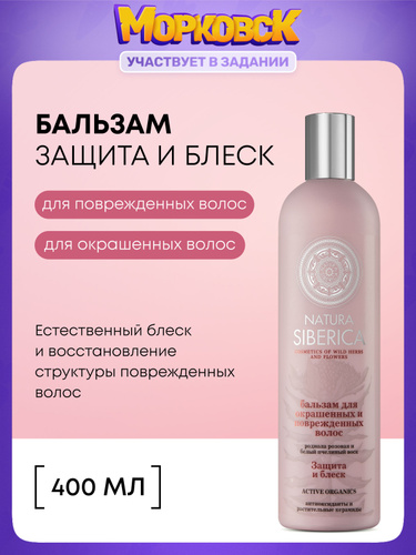 Natura Siberica Бальзам для окрашенных и повреждённых волос восстанавливающий разглаживающий, кондиционер ополаскиватель увлажняющий питательный кератиновый Защита и блеск 400 мл