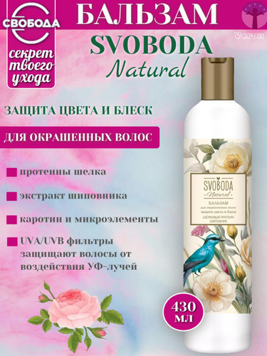 Свобода Бальзам-ополаскиватель Svoboda Natural для окрашенных волос экстракт шиповника, шелковый протеин, УФ-фильтры 430 мл