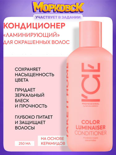ICE by Natura Siberica Кондиционер для окрашенных волос профессиональный с эффектом ламинирования, бальзам ополаскиватель 250 мл