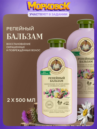 Рецепты бабушки Агафьи Репейный Бальзам для поврежденных и окрашенных волос восстанавливающий укрепляющий, кондиционер ополаскиватель 2 шт х 500 мл