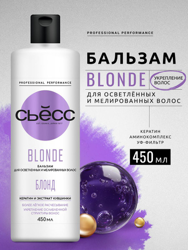 СЬЕСС Бальзам кондиционер женский Blonde для осветленных и мелированных волос, укрепляет ослабленную структуру волос, 450 мл
