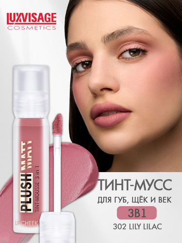LUXVISAGE Тинт для губ, щек и век 3 в 1 PLUSH MATT тон 302 Lily Lilac 3,4г