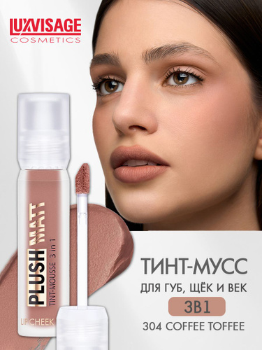 LUXVISAGE Тинт для губ, щек и век 3 в 1 PLUSH MATT тон 304 Coffee Toffee 3,4г