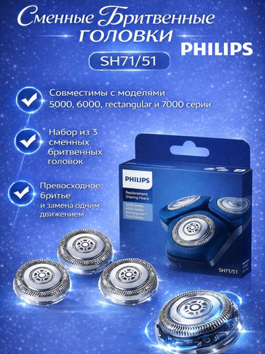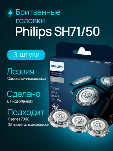 Бритвенные головки Philips SH71/50 совместимы c бритвами серии 7000 (S7xxx) и серией 5000 (S5xxx) с угловатой формой, нержавеющая сталь