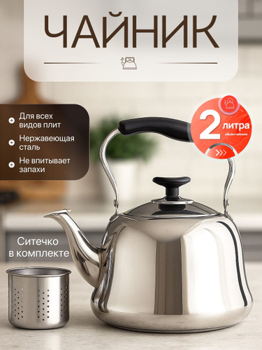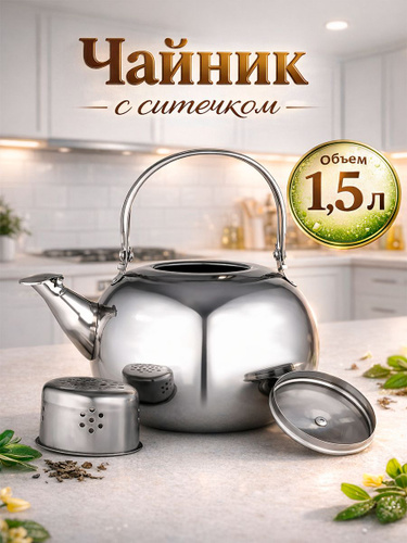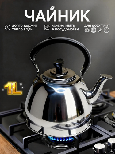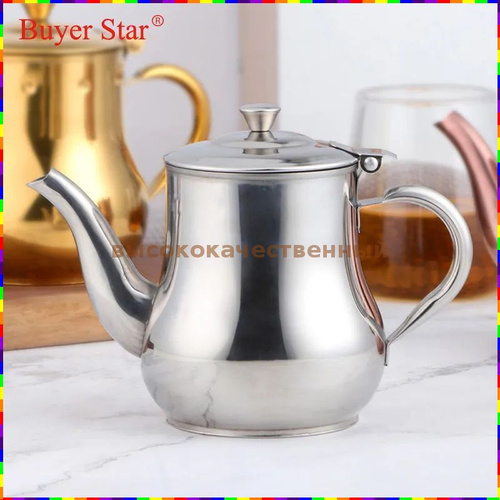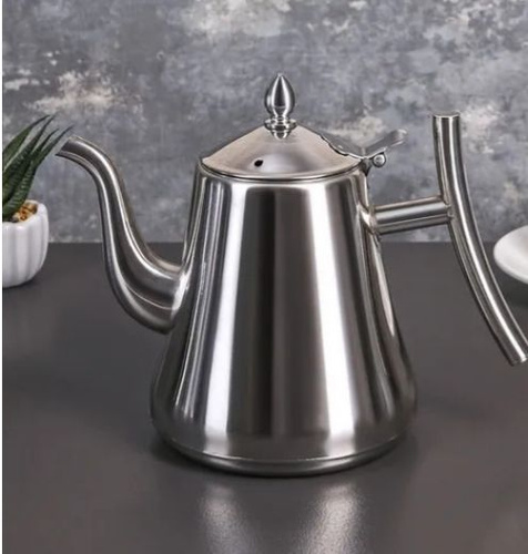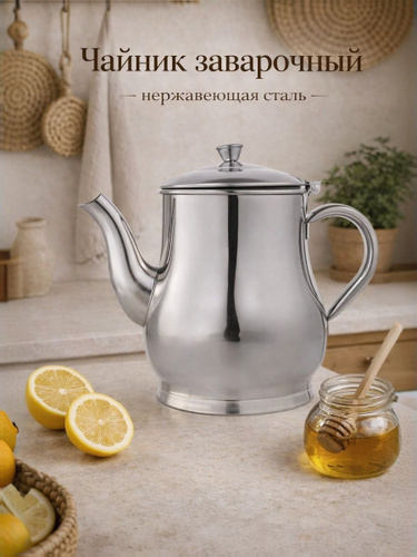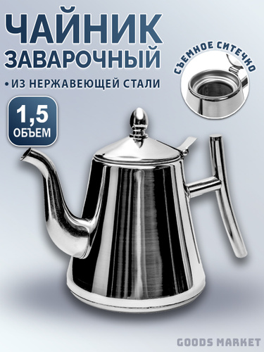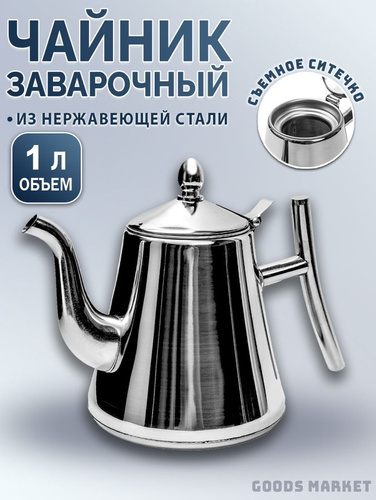 Чайник заварочный 1 л металлический из нержавеющей стали, с ситечком