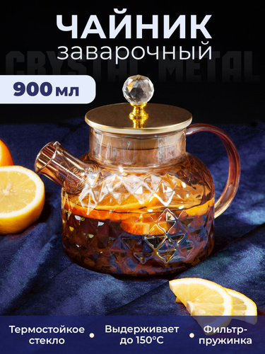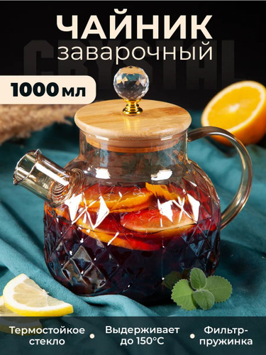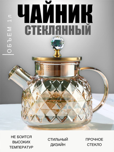 Чайник заварочный стеклянный с декором 1000 мл (Янтарный)