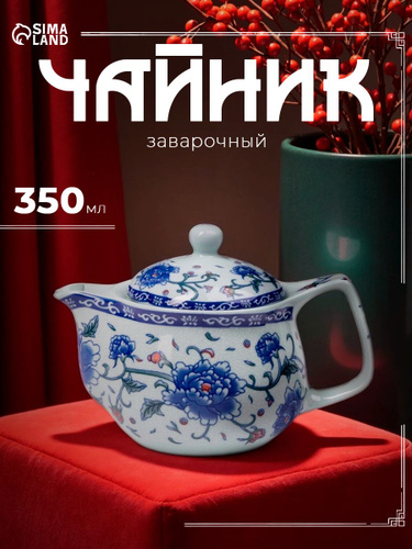 Чайник заварочный керамический "Цветение роз", заварник с металлическим ситом, цвет бело-синий, объем 350 мл