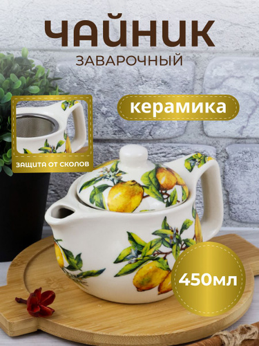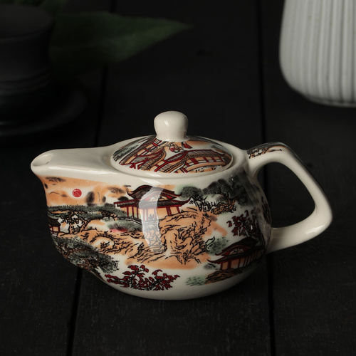 Чайник заварочный керамический "Пейзаж", заварник с металлическим ситом, объем 200 мл, размер 15х9,5х9 см