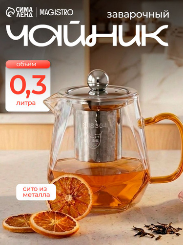 Чайник заварочный стеклянный "Калиопа", заварник с металлическим ситом, цвет прозрачный, объем 250 мл
