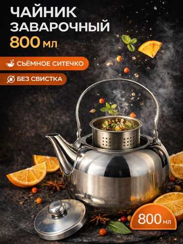 Чайник заварочный 800 мл металлический с ситечком из нержавеющей стали