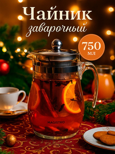 Чайник заварочный стеклянный с металлическим ситом Magistro "Мехико", заварник, объем 750 мл