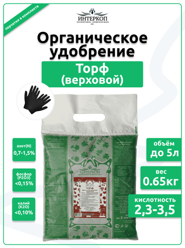 Кислый торф верховой, удобрение для рассады, цветов и растений Интеркоп, 0.7кг/5л