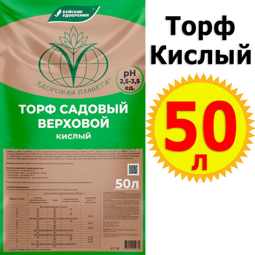 Торф садовый Верховой (кислый) 50 л БХЗ "Буйские удобрения" 50 литров кислого 50л грунта
