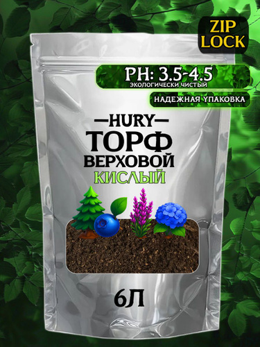 Торф кислый для растений и цветов, HURY, 6Л, удобрение