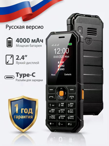 Мобильный телефон Мобильный телефон кнопочный для армии, черно-серый