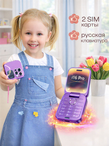 Мобильный телефон раскладушка i16 ПРО мини фиолетовый