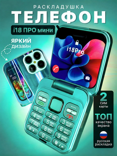 Мобильный телефон раскладушка i18 ПРО мини изумрудный