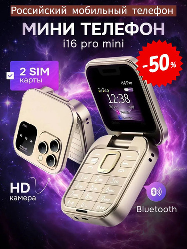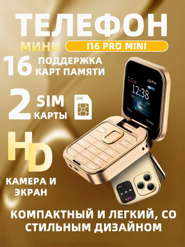 Мобильный телефон раскладушка i16 ПРО мини Золотой