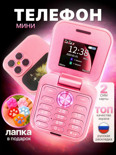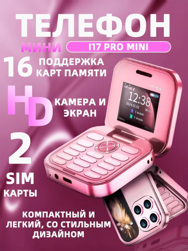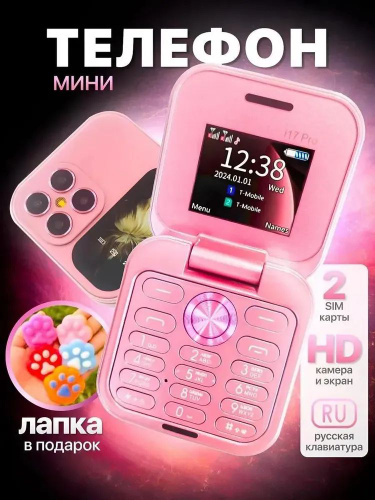 Мобильный телефон раскладушка i17 ПРО мини Розовый
