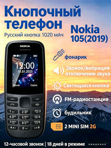 Кнопочный мобильный телефон Nokia 105 (Нокиа)